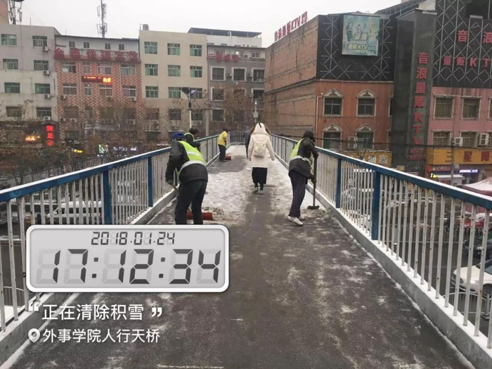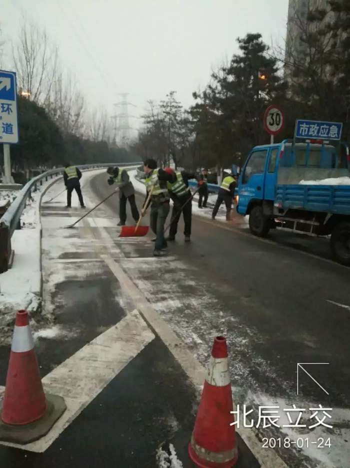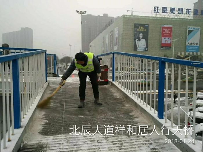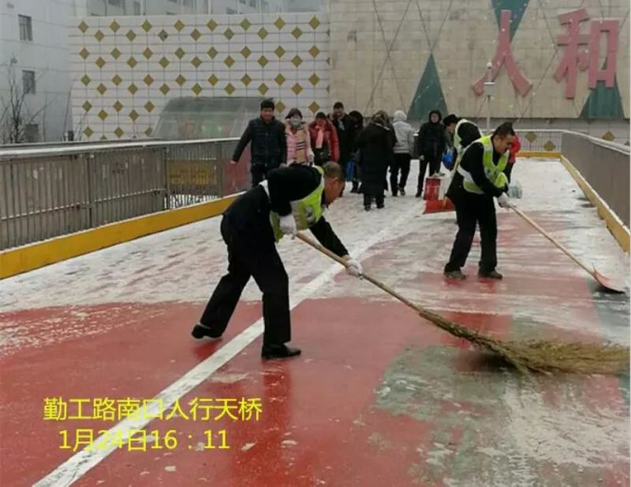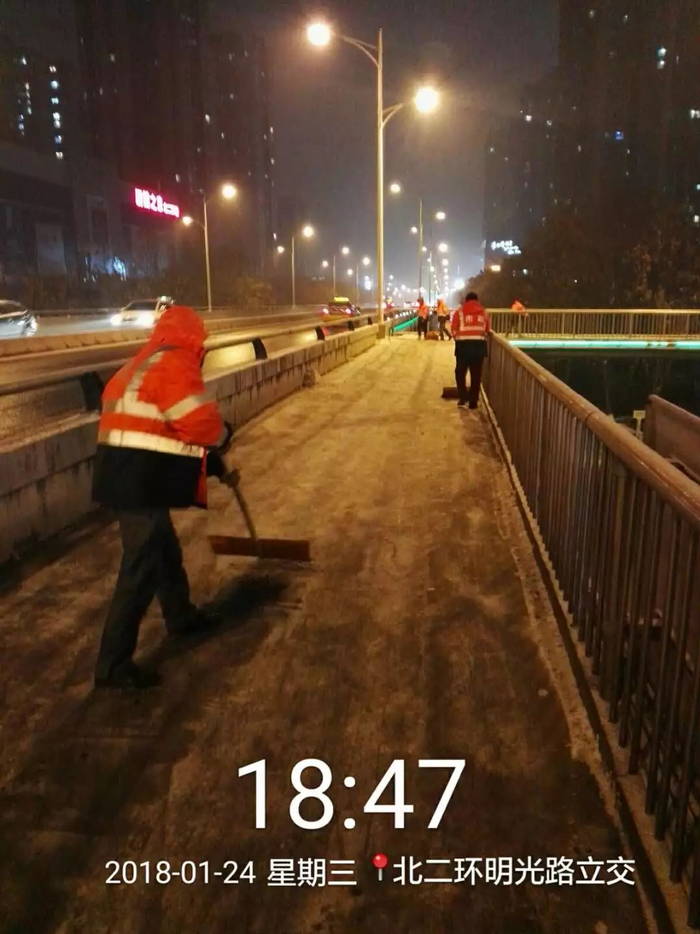 市政部门对负责的管辖区域内146座人行天桥、82座立交桥及跨线桥、21座下穿通道进行融雪除冰,确保立交桥上下坡道及匝道、下穿通道上下坡道、跨河桥桥面、人行天桥踏步及主桥无积雪。
