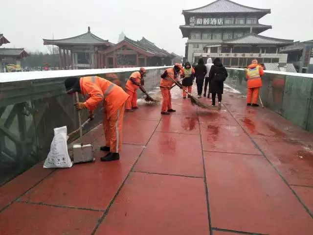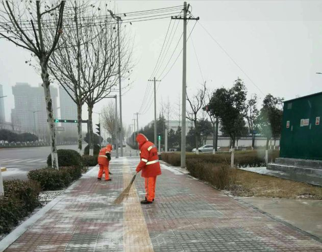 市城管局要求各单位要全力以赴抓好除雪的组织工作。全体环卫工人和城管工作人员在降雪期间,必须全部在岗。各单位建立24小时昼夜值班制度,“以雪为令”,在20分钟内启动扫雪除冰工作,应急处置队伍全员上岗,根据路面积雪情况和降雪量,采取相应的处置措施。