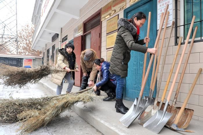 图为太华路街道纱厂东街社区“以雪为令”,刚开始下雪便准备整理清雪工具,时刻准备除雪,为市民保驾护航。