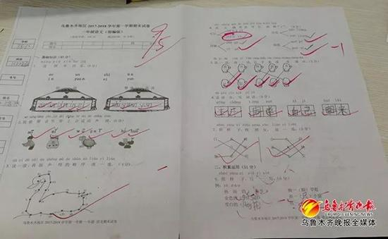 原标题:乌鲁木齐双胞胎小兄弟期末试卷“萌同步”:分数、字迹都相近
