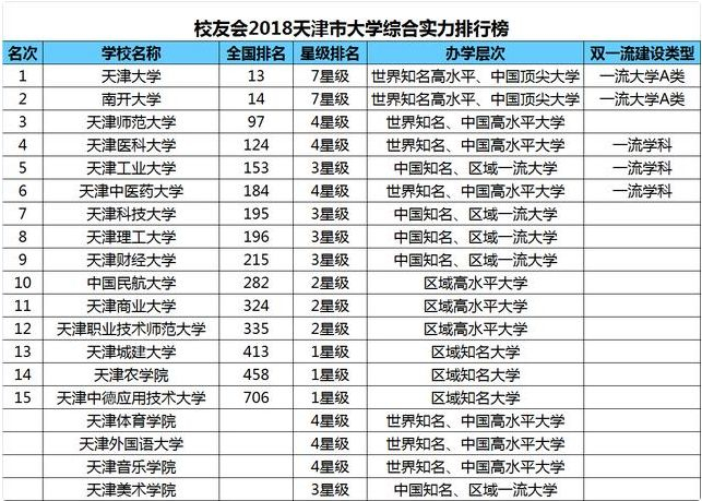咱天津的大学都排名多少?
