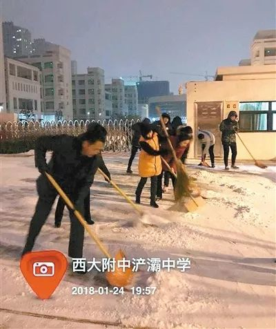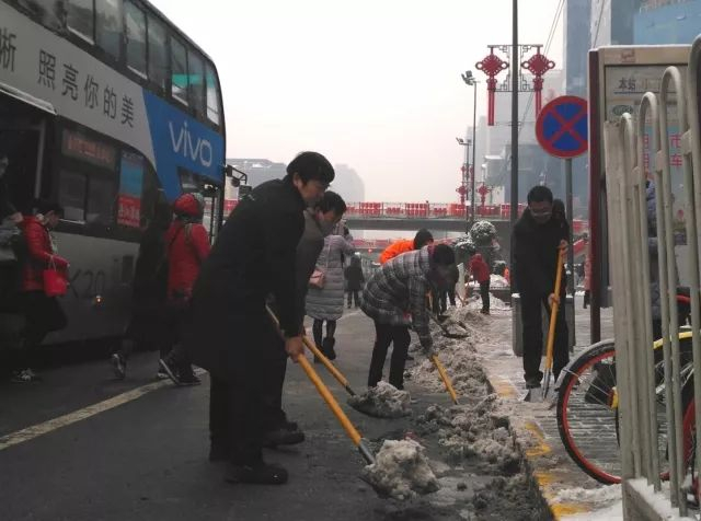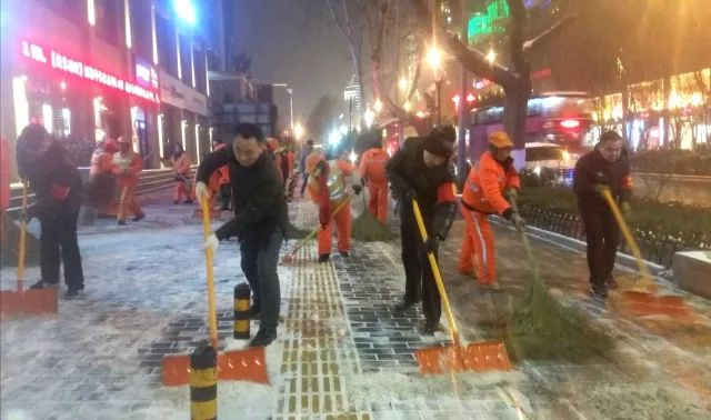昨晚,浐灞生态区领导干部全员上岗,班子成员带领全体干部员工连夜上路,重点做好辖区内主次道路、公交车站、地铁、商场、学校等人员密集场所道路、出入口的积雪积冰清理工作,确保群众出行安全畅通。