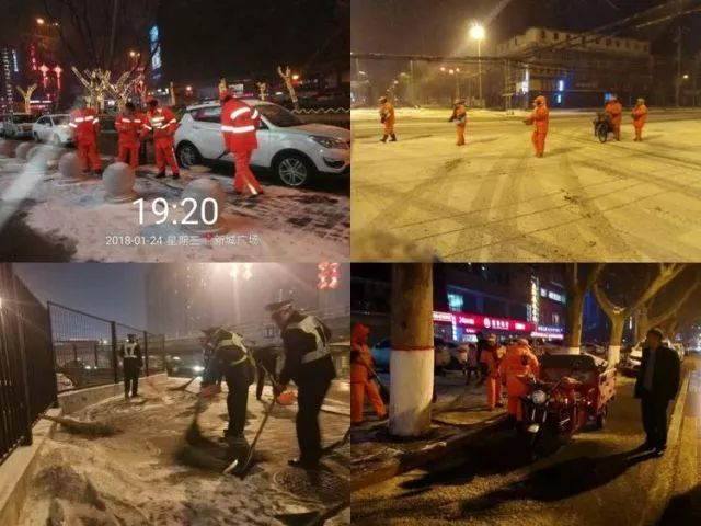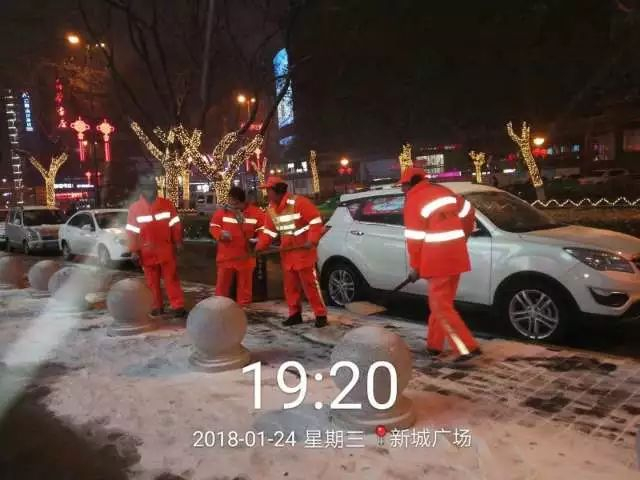 24日晚至25日早8点,新城区除雪除冰共出动1800人,抛洒融雪剂110吨,宣传动员沿街门店3500户,出动铲车、装载机、运输车等大型除雪设备共80余台。
