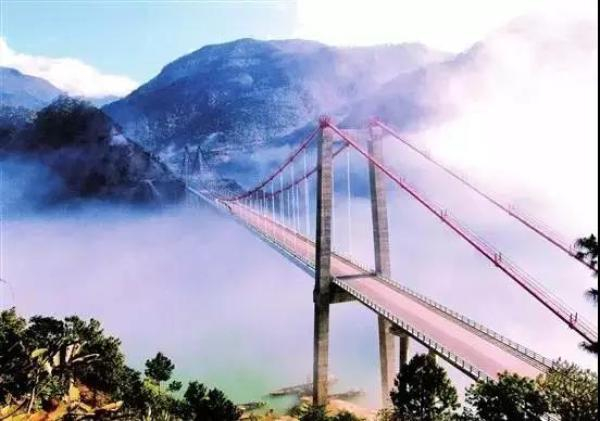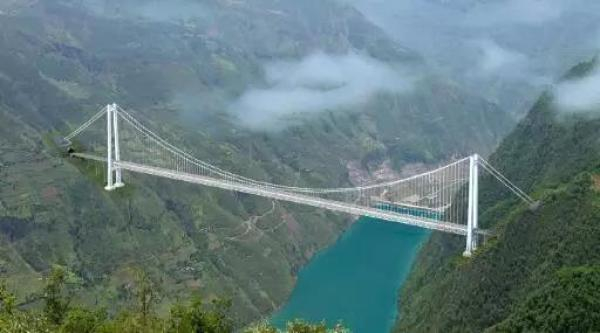 再如在建的金安金沙江大桥——是世界最大跨径山区悬索桥,位于成丽高速华坪至丽江段高速,目前高度是世界第四。
