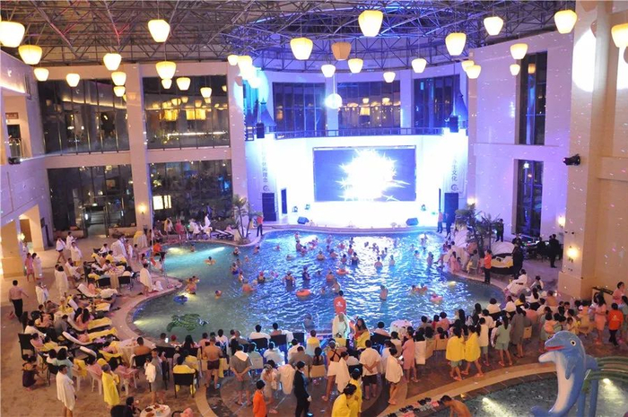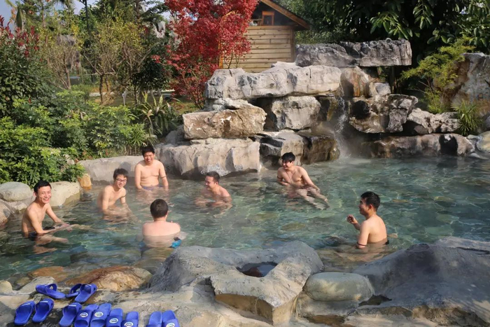 温泉有露天池37个、室内池8个,含鱼疗池、儿童池、药池等,日接待量可达1500余人,温泉区域设有接待大厅、更衣区、棋牌室、休息大厅、简餐区等功能区和休闲娱乐设施可以满足游客各类需求。