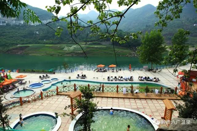 黔贵六广温泉,室外温泉泡池区共有形态、大小、水温各异的特色室外泡池30余个。