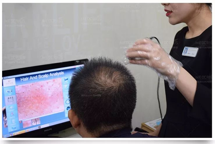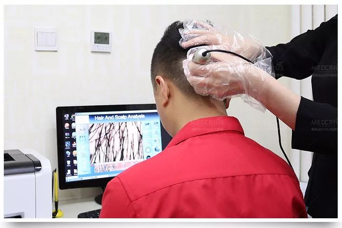 除了从症状上判断,最科学的诊断方法是通过专业的毛囊检测来诊断,通过毛囊检测仪能够清楚的了解头皮油脂情况、毛发健康程度等。