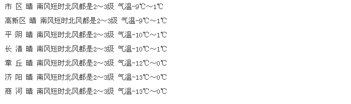 最低气温济阳、商河-9℃