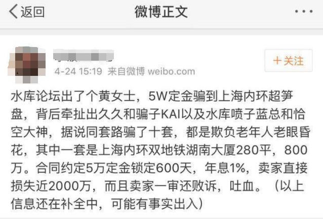 这也正是2017年4月下旬,在不少论坛、微信群和微博等各种平台持续发酵热议的水库论坛“设局谋房”事件。当时,微信公众号“魔都房房房”首次披露此事后,引起上海房产圈以及房产律师的关注。