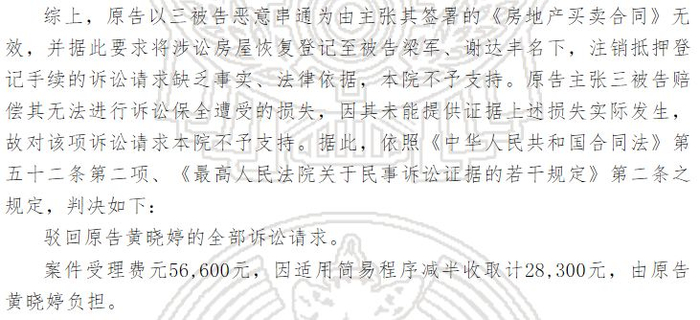 最后闵行法院,普陀法院,一审都判决买房方黄晓婷败诉,判决解除双方签订的《房地产买卖合同》,没收定金。
