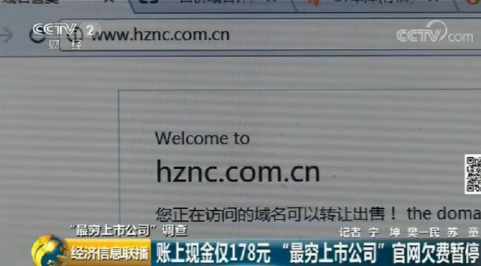 央视财经频道记者输入华泽公司的网站地址后发现,该网站确实已经停止运营,而域名也已被人抢注后标价售卖。