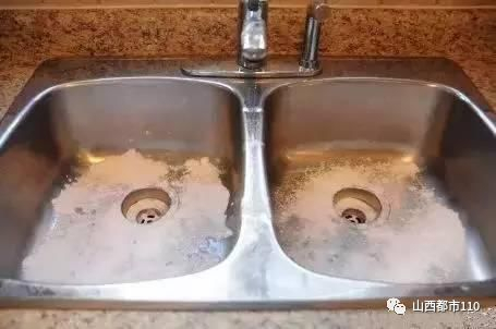 把小苏打粉均匀地倒在水槽和排水孔的四周,