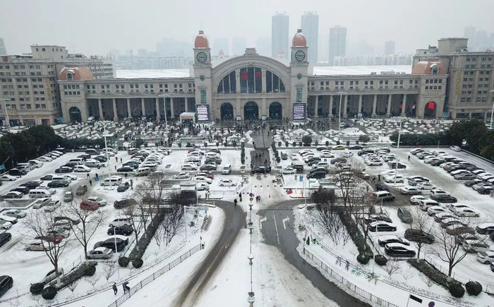冰雪覆盖的汉口火车站。记者刘斌 摄