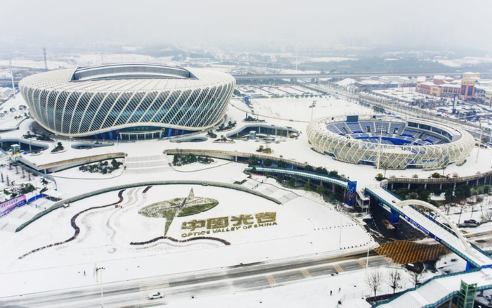 昨日,大雪过后的武汉披上银装,光谷网球中心美不胜收。记者周迪 摄