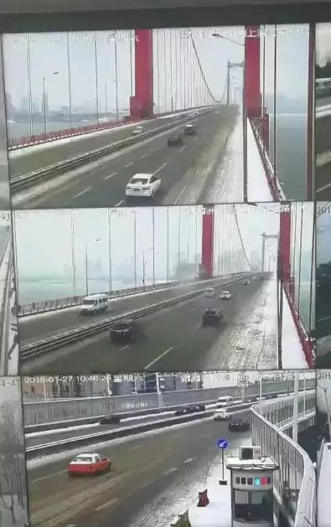 前天开始的一场大雪,使江汉一桥桥面上布满了冰雪。这里坡陡、雪厚、路滑,车辆通过时爬坡很难,还容易导致无法控制的后溜,此时撒盐起不到什么作用。