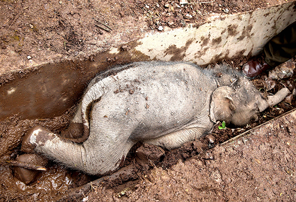 2014年10月16日16时50分,西双版纳州森林公安局在勐腊县瑶区乡纳卓村委会曼帕村小组东面1500米处森林内发现一头亚洲象尸体;经勘察,腐烂尸体为一具雄性亚洲象,象牙被取走,系被制式枪支射杀,当时西双版纳州森林公安局悬赏4万元征集线索。