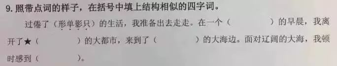 这是杭州五年级小学生的语文题。据说,有位小学生被试卷给难哭了,还有家长为此拨打了12345。