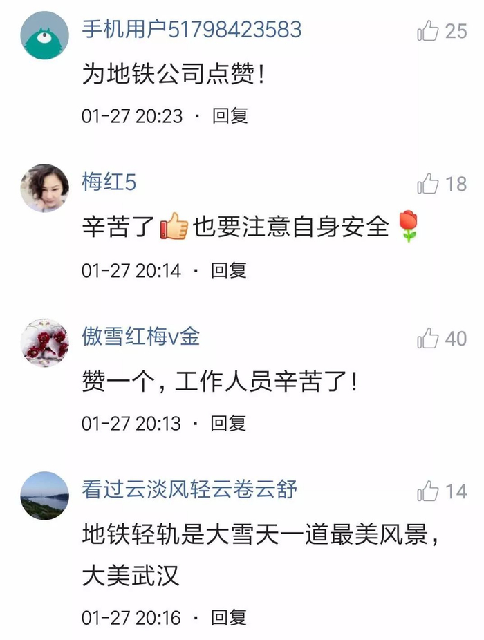 冰冻天气,地铁成了市民出行的主力,越来越多市民成了地铁族。网友们纷纷给武汉地铁点赞~~