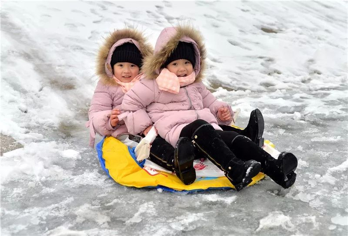 公园湖面结出厚厚的冰,“滑冰”走起。记者 詹松 摄