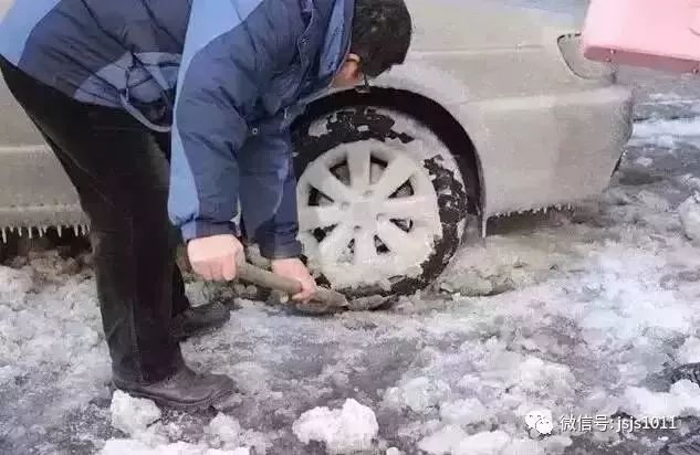 轮胎冻住了千万不要硬来,先用铁铲将冰铲除,小心不要弄坏轮胎。之后使用上述手刹的方式,挂入一档或倒档,轻踩油门或靠怠速来前后尝试移动车辆。如果依然没戏或如图中那种极端情况,唯有默默等待冰雪融化。