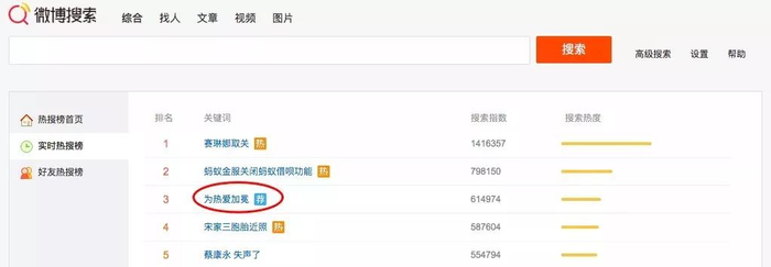 目前微博有3亿多月活用户,微博热搜榜产品报告称,2016年每日用户主动搜索2.5亿次,引导1.35亿搜索热度,在搜索结果页创造33亿微博曝光机会;80%的用户每月15天以上使用搜索获取信息,每人日均搜索超过12次。因此,“热门搜索”的位置便格外重要。