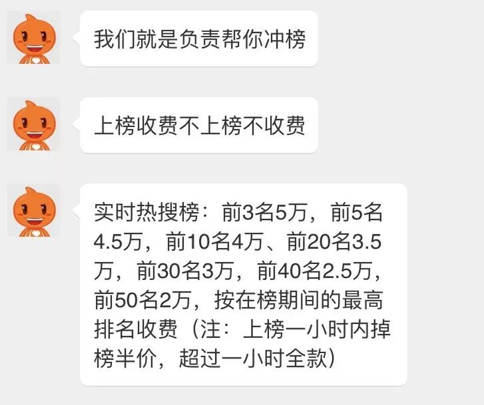 此外,据业内人士透露,花钱不仅可以上微博热搜榜单,还可以把已经上榜的热搜“撤下来”。