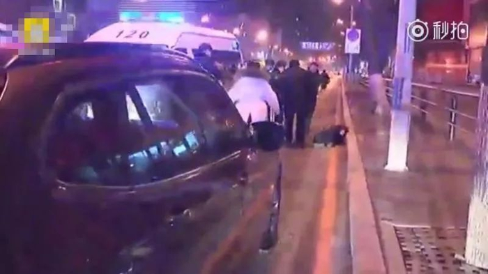 男子醉倒街头 女司机守20分钟
