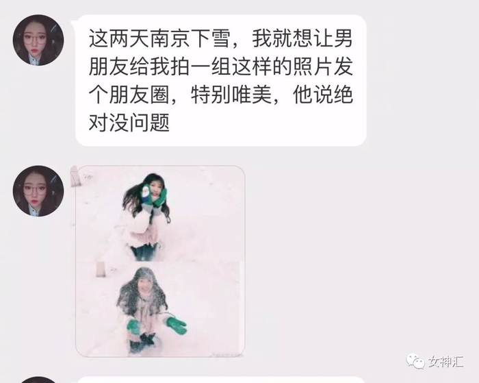 下雪了让男朋友给我拍张美照发朋友圈,看完照片想换个男朋友下雪了,想让男朋友帮忙