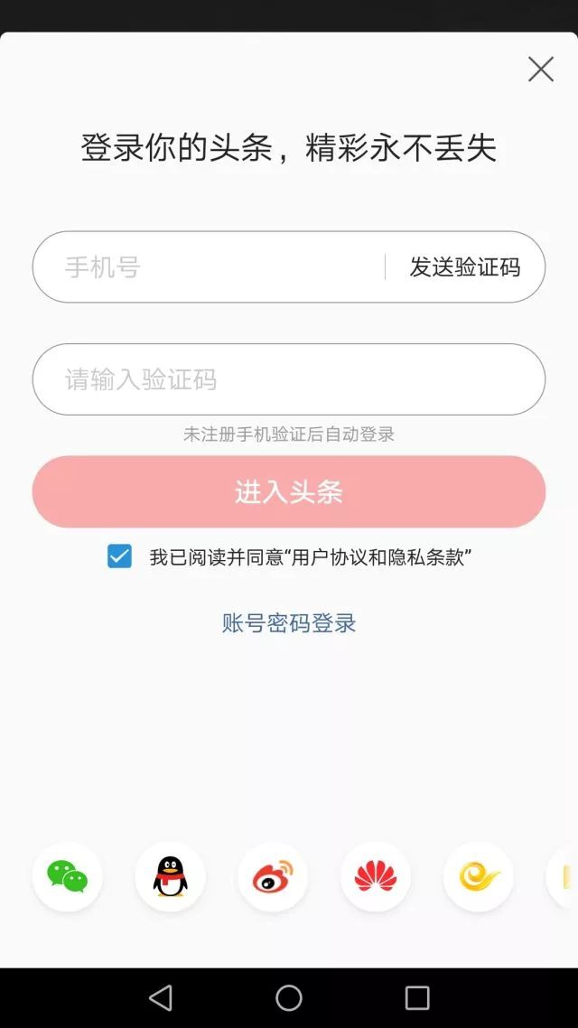 今日头条登录界面截屏