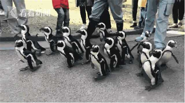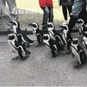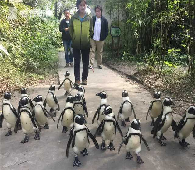 呆萌可爱的企鹅在饲养员的带领下,沿着指定的路线漫步走,其中还有精彩的科普讲解。