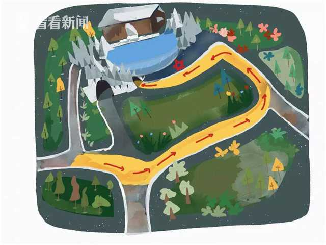 企鹅漫步路线:企鹅馆外绕行一周后回到室内展厅,游客可在五角星处等待室内展区的精彩讲解。