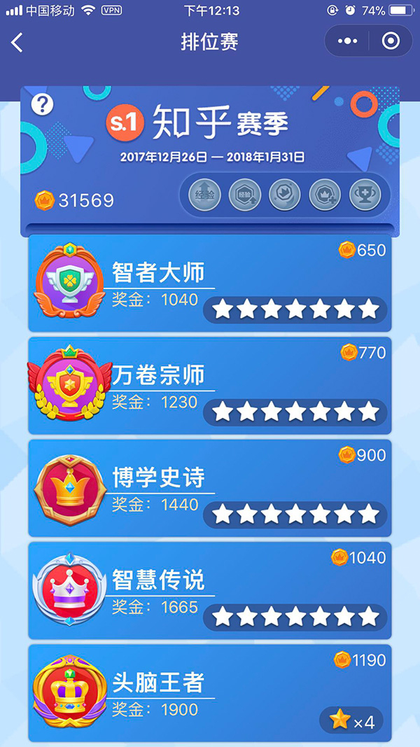 当然,玩家热衷的原因也很多。直播平台有奖金、名人等各种花样,小科说,“别人玩时我跟着看了会,后来自己主动去玩,就是想看看自己能不能答对了拿钱!”乐乐表示,“听说是王思聪弄的,好奇就去看看。”肖青有一阵没玩这类游戏了,最近又关注起来,“因为我是马未都的粉丝啊!听说有马未都的国学专场就强势围观!”至于知乎的小程序头脑王者,星星说,“最开始玩是因为好友发了对战模式给我,PK了一把,大概熟人效应吧。起初赢得多,也不觉得太有意思,等玩到后面的段数,高手很多,就产生了竞争意识。”而已经刷到“头脑王者”级别的小妖也表示,“朋友非要和我PK。”