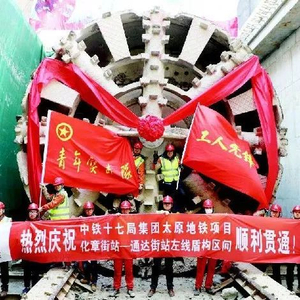 随着盾构机刀盘的隆隆转动,“汾晋一号”盾构机于通达街站接收端破土而出,标志着中铁十七局承建的化章街站至通达街站区间左线实现贯通。
