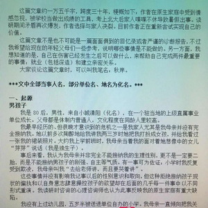 这孩子有心理缺陷,但父母没有发现也没有意识到,孩子长大后意识到了,但我觉得他的医生没有给他正确有效的治疗,他现在的状态仍然是病态。