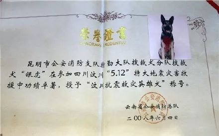 “银虎”和“小虎”是昆明市公安消防支队搜救犬中队的两只搜救犬,在汶川地震等灾害中英勇救人,屡立战功。