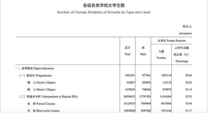 据中国教育部统计,自2009年普通本专科女生比重首次超过男生后,男女生数量差距越来越大。2016年,全国本科女大学生人数,比男生多出了111万,硕士研究生中,女生比男生多了10万。