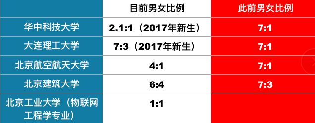 2015年,中国高校新媒体联盟发布了全国719所高校男女比例排行榜:前十名中,4所师范类院校和4所外国语大学赫然在列。相反,排在榜单后10名的高校中,除1所刑事学院、2所体育院校外,其余7高校均为理工类大学。
