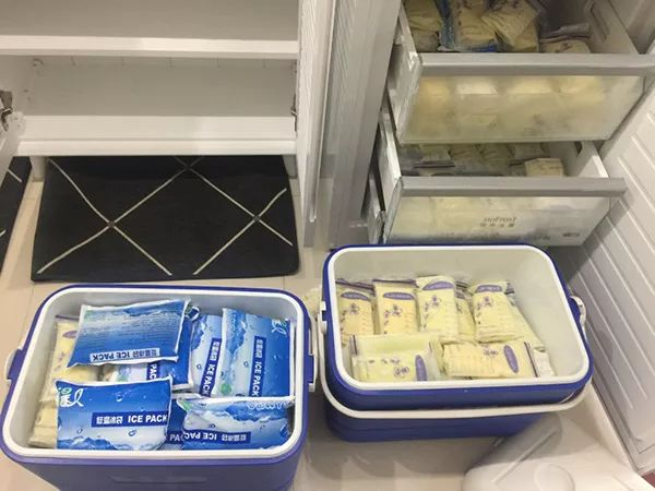 坐大巴运奶的途中,四五个小时里她也要吸奶,丈夫会让她坐在里侧,他在外侧看护。除了大的冻奶箱之外,她还买了个小的冷藏箱。随时要吸奶的话,小箱子可以起到一个冷藏的作用。“在路上吸的奶先放在小箱子里冷藏,到了之后再冰冻起来。”
