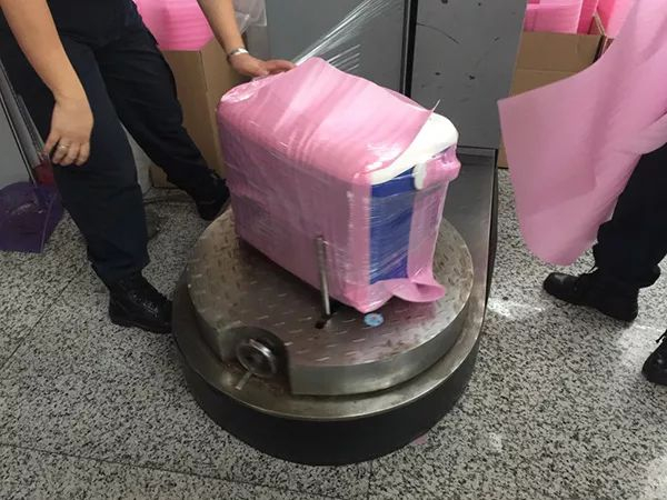 在上海浦东国际机场,冻奶箱被安检人员拆包。本文图片均为采访对象提供