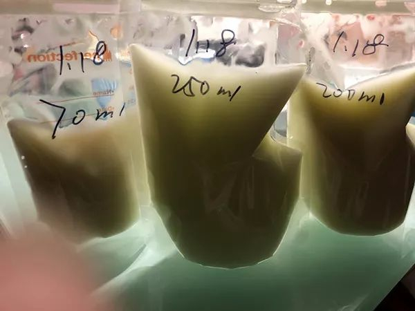 俊俊一天的奶量是三袋日奶,两袋夜奶。苏晓的妈妈会根据宝宝的奶量提前一天把冻母乳转入冰箱冷藏室,第二天宝宝一饿就可以喝到加热至接近体温的母乳。