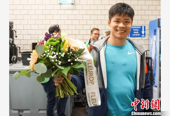 图为苏炳添(持花者) 广东省体育局供图