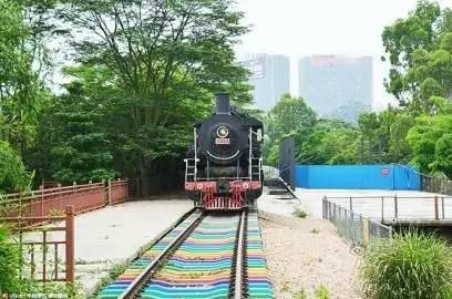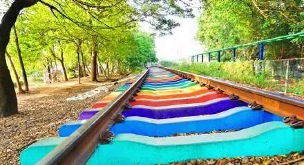 当铁路被涂上七彩的颜色,