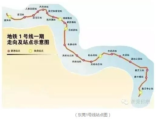 再来看看东莞地铁一号线。根据《东莞市综合交通运输体系发展“十三五”规划》,东莞地铁一号线将分三期进行建设,共设置21个站,途经洪梅、望牛墩、道滘、万江、南城、东城、大岭山、松山湖、大朗、黄江10个镇街(园区)。从规划来看,东莞地铁一号线也是东莞地铁线网中的重要干线。