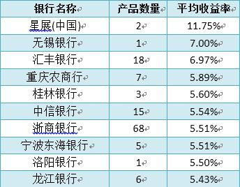 银行理财产品排行;星展银行2款产品平均收益11.75%