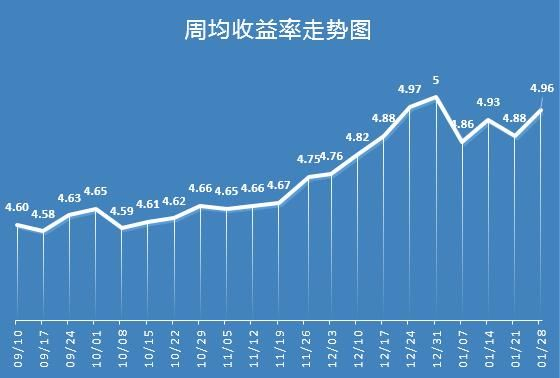 本周(1月22日-1月28日)银行理财产品发行1738款,较上周减少了107款;产品平均期限为167天,平均预期年化收益率涨至4.96%,较上周升高了0.08个百分点。