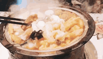 没过一会小分队才明白大婶这么做的道理。因为等锅大开后,汤会热烈地向外溢,舀出来的那碗汤,不仅少了喷溢的可能,而且吃到一半再加到锅里,味道也能更鲜美。
