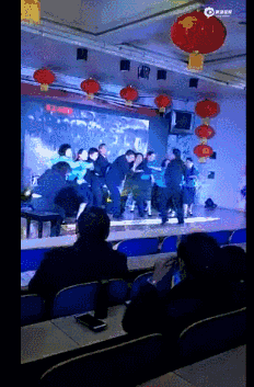 而据正义君的观察,近几年,恶搞《黄河大合唱》成了非常火热的晚会节目,原本的合唱歌曲似乎成了小品表演,演出单位除了一些企业,还包括幼儿园、中学、大学等教育机构。仅过去一个多月内,就有十多段相关的恶搞视频:2017年12月29日,山东曲阜某街道中学的元旦晚会;2018年1月22日,银川某酒店的新春联欢会;2018年1月23日,北京某大学国重实验室的新年晚会……
