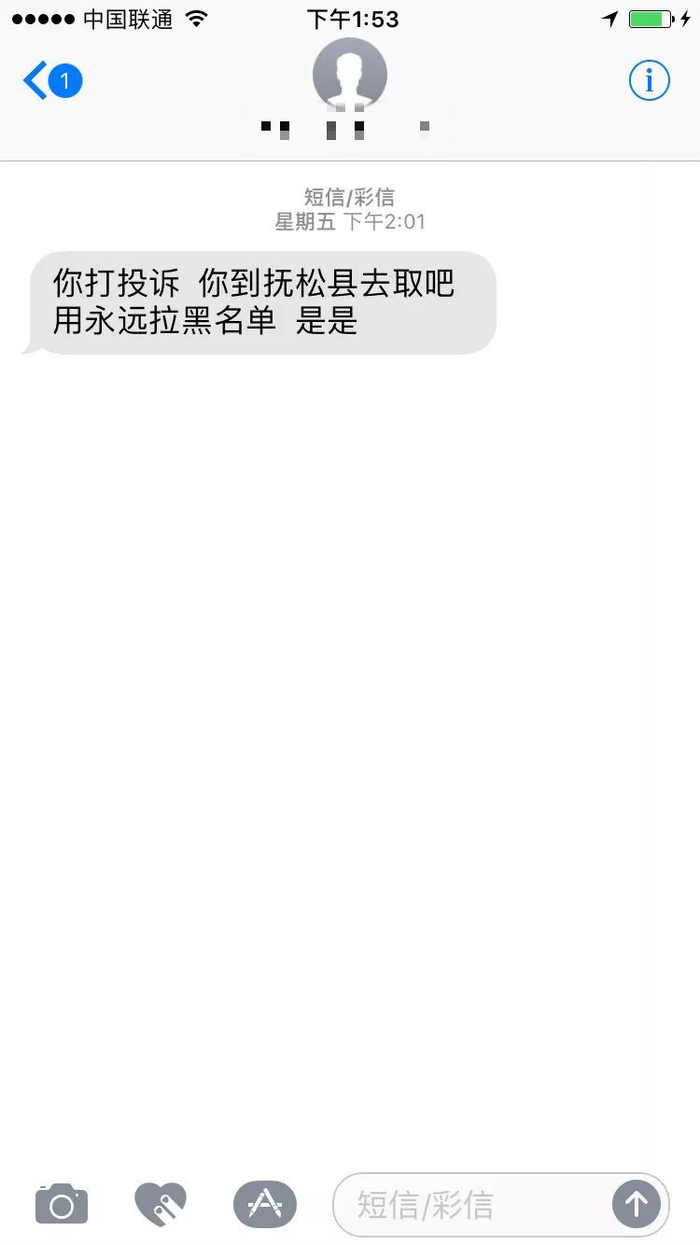 要求快递送货上门被拒收件人要投诉 随后收到短信“你打投诉 你到抚松县去取吧”