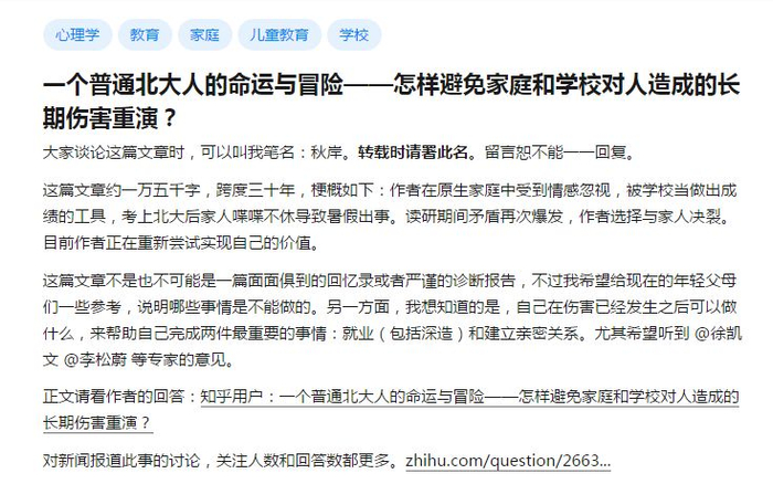 近日,有关“北大毕业生拉黑家人”的报道引发网络热议。