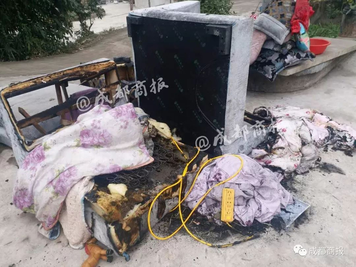 事后,周围的邻居一起用水把火扑灭。这时,他们发现着火的就是彤彤睡的那个沙发,已经被烧得黢黑,沙发下还有一个插线板,已经烧坏。“周围没有使用其他取暖电器,插座上面也没有接电器,估计是短路引起的,插座线是从沙发下边穿过的。”家属怀疑,这次意外是插线板短路引发。